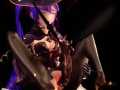 3D anime shemale threesome tittyfucked and cummed in the gla