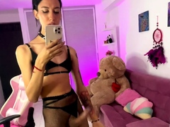 Angelina Fondling Her Ass and Jerking Her Hard Tranny Cock