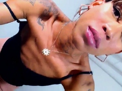 Amazing Chocolate Tgirl dripps lots of precum in WebCam Show