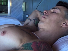 Busty TS Latin babe barebacked in ass
